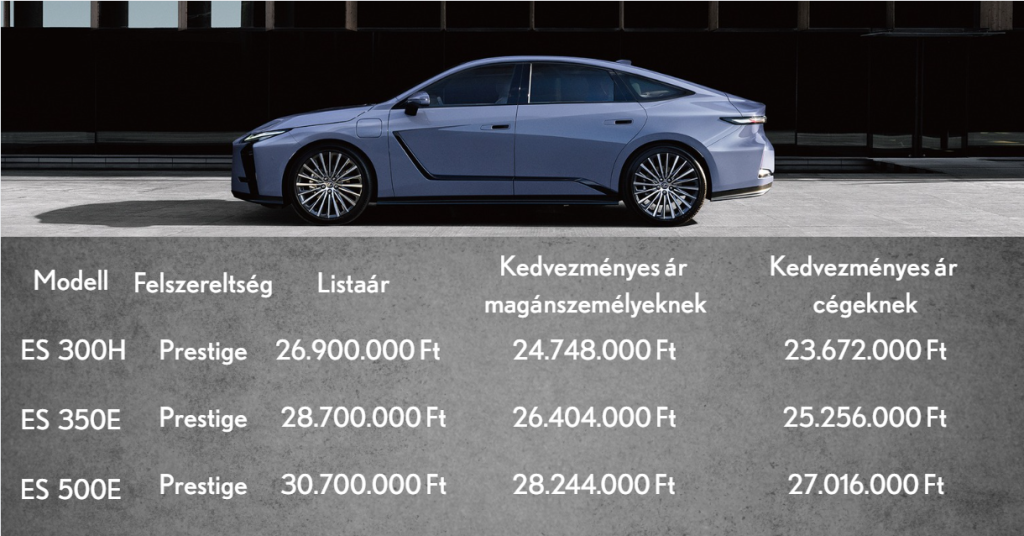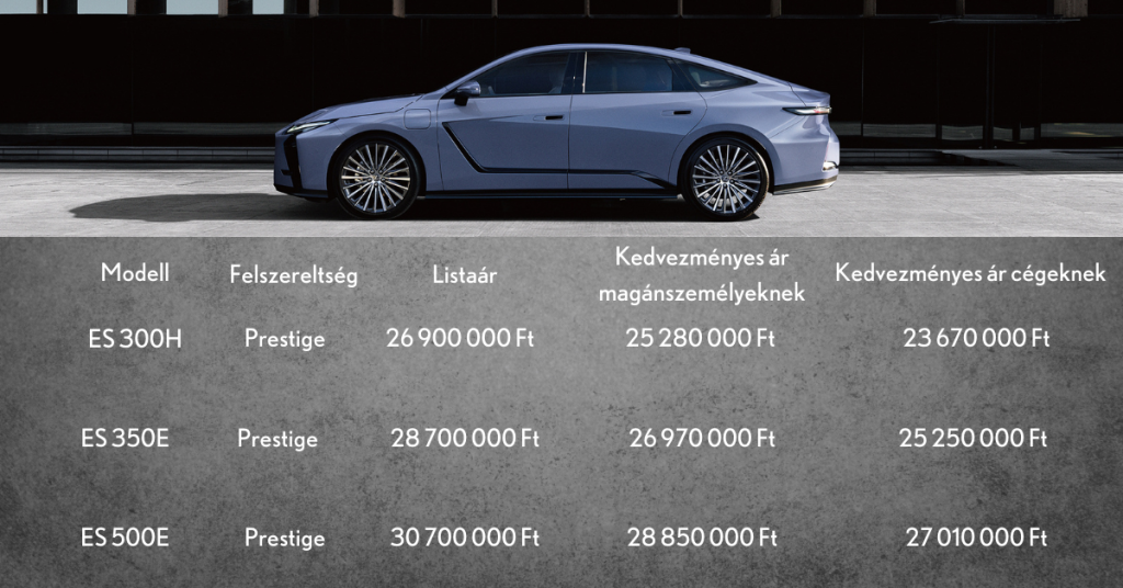 LEXUS ÚJ ES – ELŐRENDELHETŐ BEVEZETŐ ÁRON, MÁR 23.672.000 FT-TÓL, AKÁR 1,9% ÜGYLETI KAMATTAL
